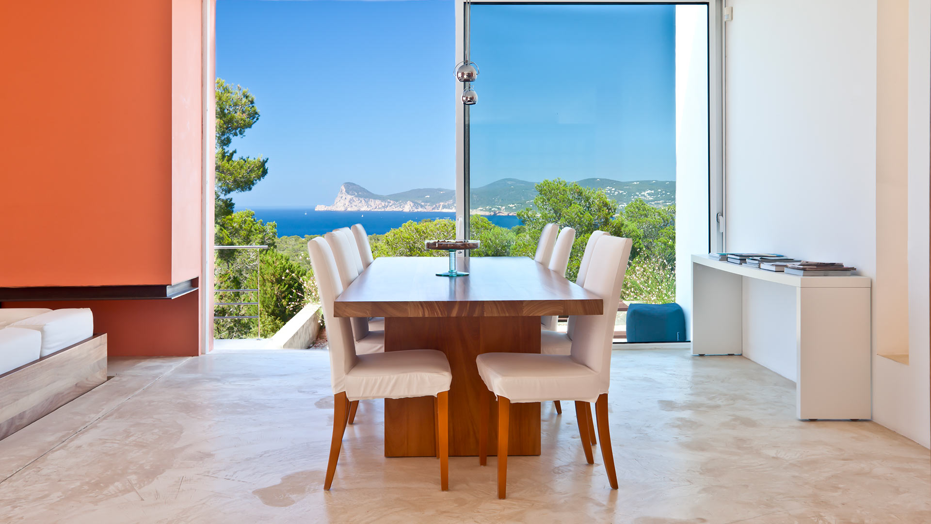 Luxury villa in Cala Basso in Ibiza, 6 air conditioned bedrooms and 7 bathrooms, a beautiful garden, swimming pool and beautiful views of the bay and the sea